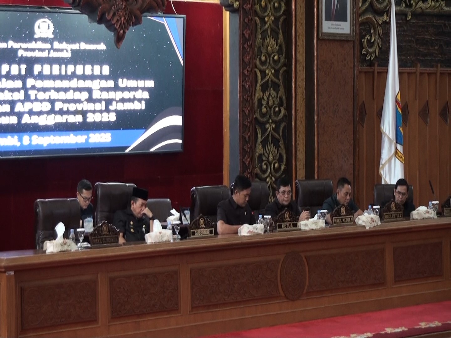 Gubernur jambi al haris menghadiri rapat paripurna dprd provinsi jambi, pada senin pagi 8 september 2025, dengan agenda mendengarkan pandangan umum fraksi-fraksi dprd, terhadap rancangan peraturan daerah (ranperda), tentang perubahan anggaran pendapatan dan belanja daerah (apbd) provinsi jambi tahun anggaran 2025. Rapat berlangsung di ruang sidang utama dprd provinsi jambi, dipimpin langsung oleh ketua dprd bersama para wakil ketua, serta dihadiri anggota dewan, unsur forkopimda, dan kepala opd pemerintah provinsi jambi. Al haris menegaskan bahwa rapat paripurna kali ini merupakan tindak lanjut, dari penyampaian nota pengantar ranperda perubahan apbd 2025 yang telah disampaikan sebelumnya.