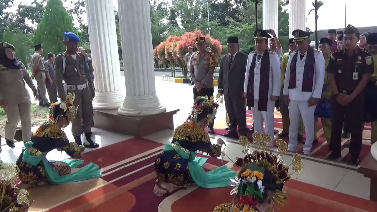 Dobrak.id – Muaro Jambi, Usai resmi dilantik dan menyelesaikan retret di magelang. Bupati dan wakil bupati muaro jambi , bambang bayu suseno dan junaidi mahir di hari pertama masuk ke kantor bupati pada senin pagi disambut dengan prosesi adat .