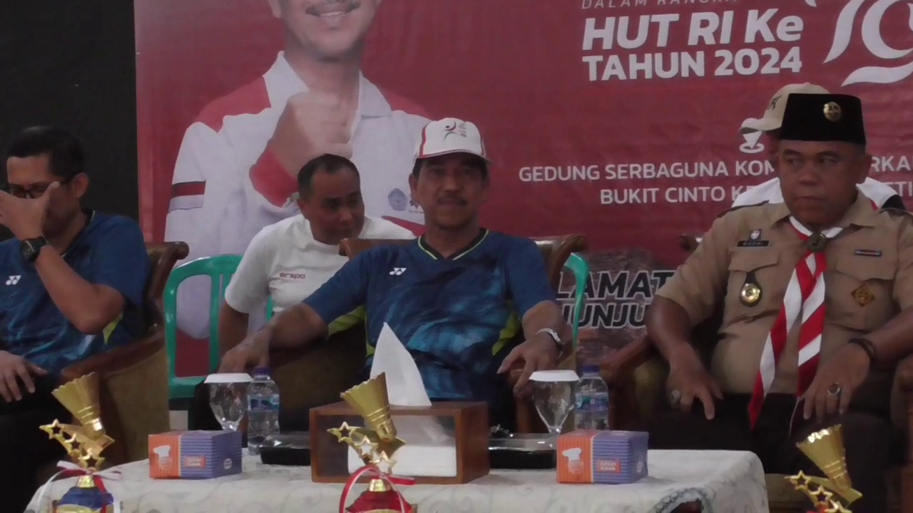 Dobrak.id – Muaro Jambi, Penjabat bupati muaro jambi raden najmi. secara resmi membuka kejuaraan bulu tangkis ganda putra dan tunggal putri antar instansi. yang memperebutkan piala bupati cup tahun 2024, kegiatan ini diikuti oleh ratusan peserta.